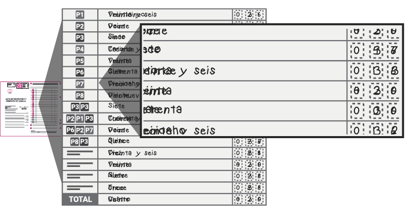 • La cantidad de votos no fue asentada en número, ni en letra. En este caso se captura cada campo sin dato y se contabiliza como cero.