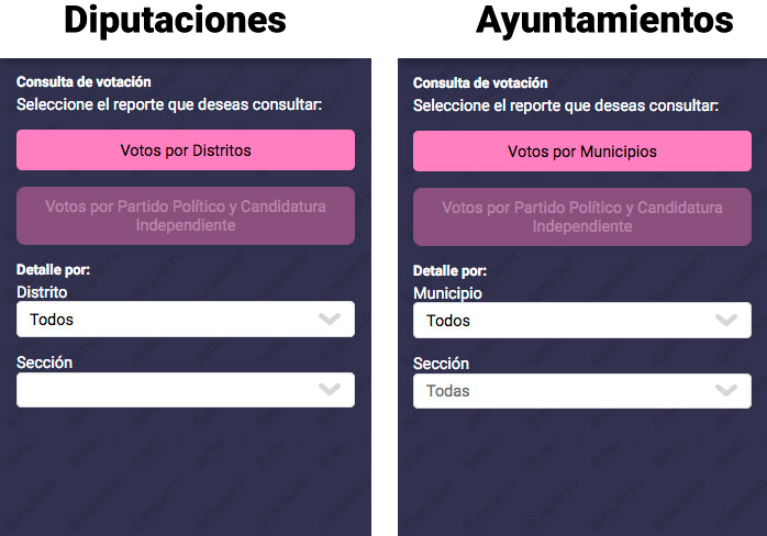 Da clic en la pestaña de la elección que deseas consultar (Diputaciones o Ayuntamientos) y en el apartado “Conoce los resultados de tu sección”, ingresa tus datos y da clic en “Consultar”.