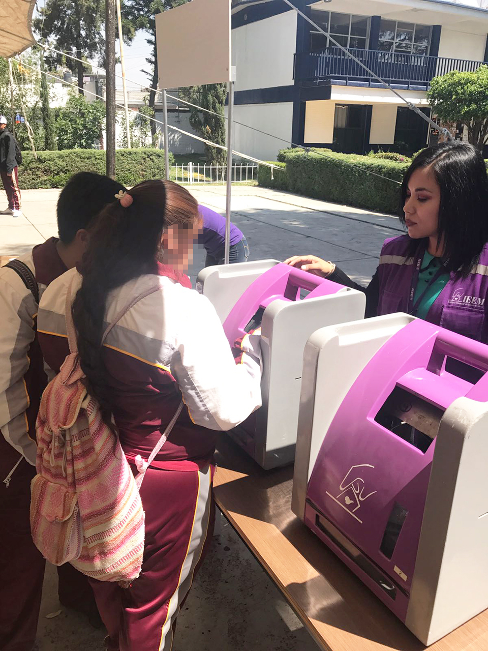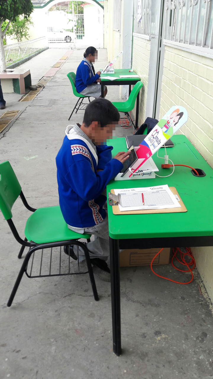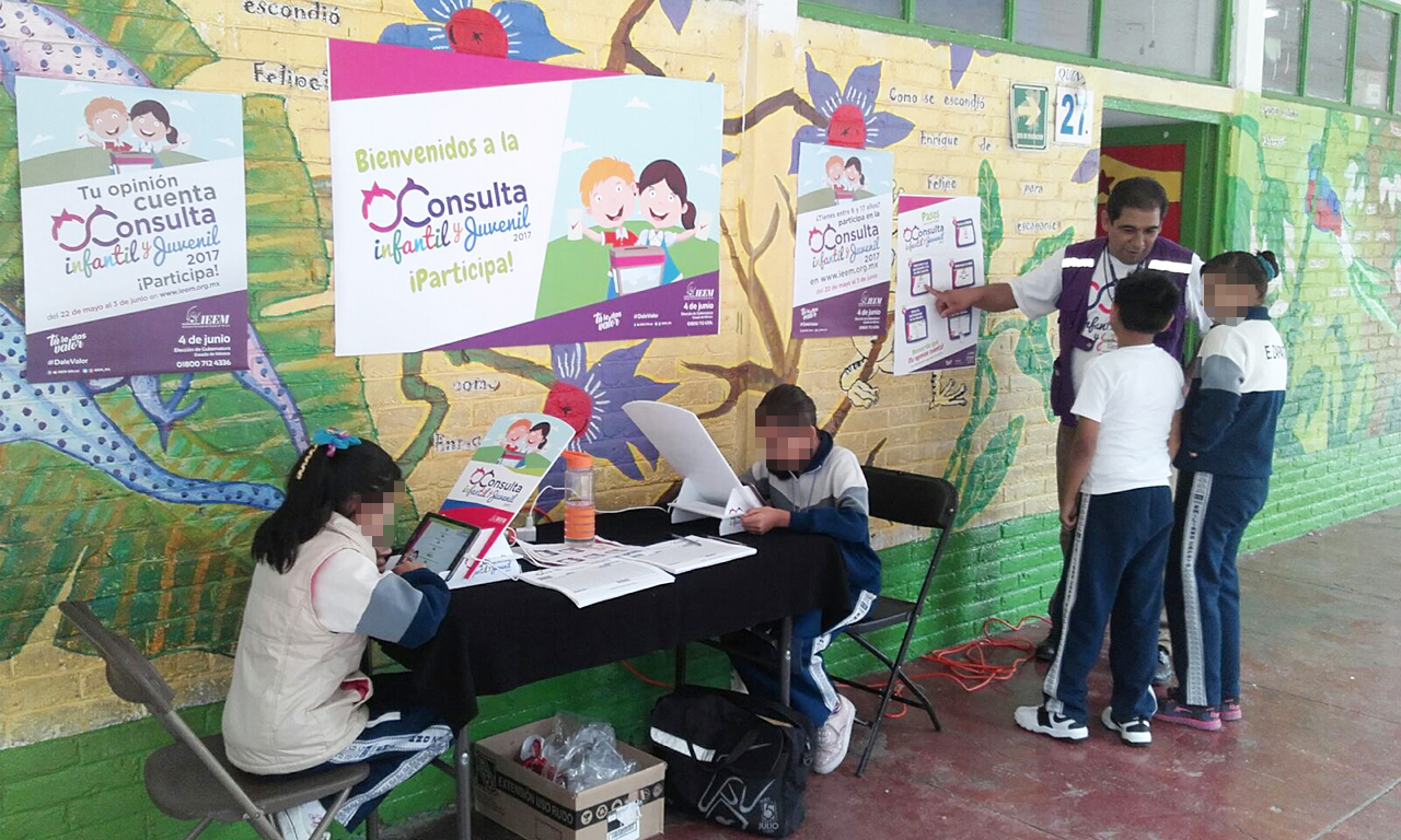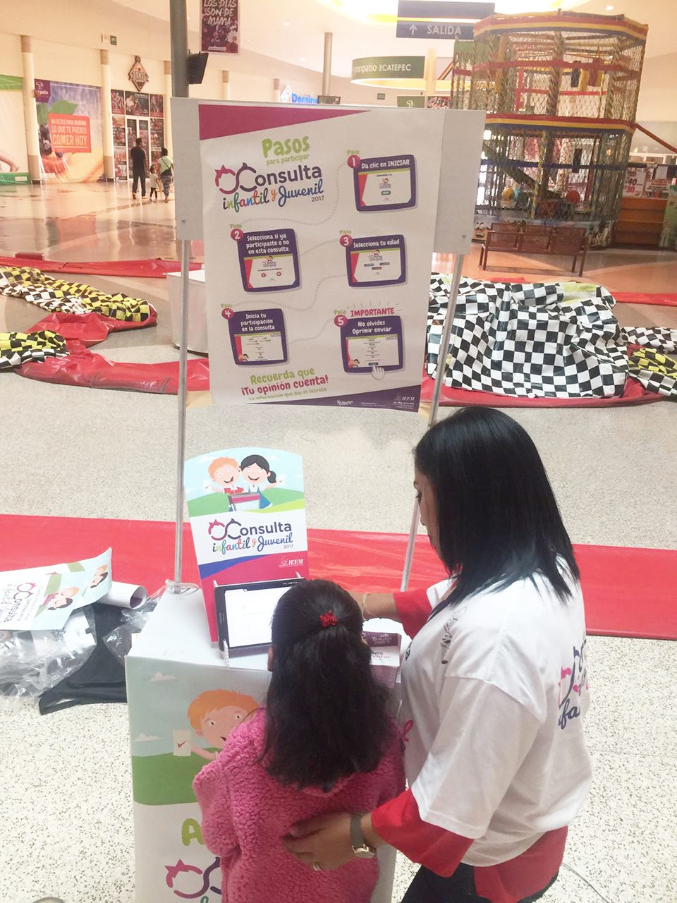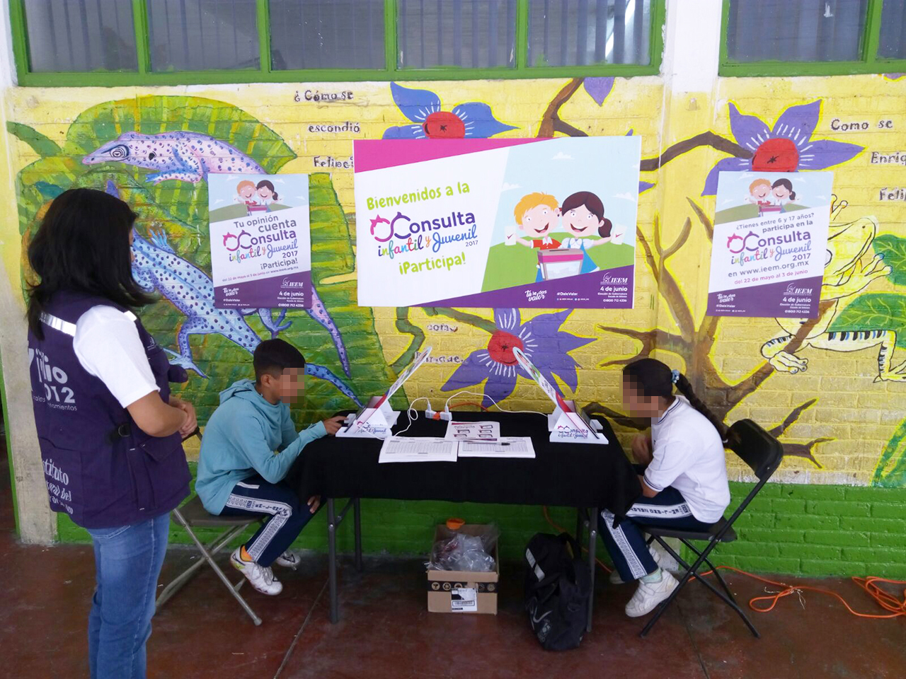 Consiste en la realización de actividades de interacción mediante tabletas electrónicas, se contesta una consulta sobre valores democráticos, las respuestas se guardan en el sistema y se elaboran reportes que son compartidos con las instituciones educativas participantes.