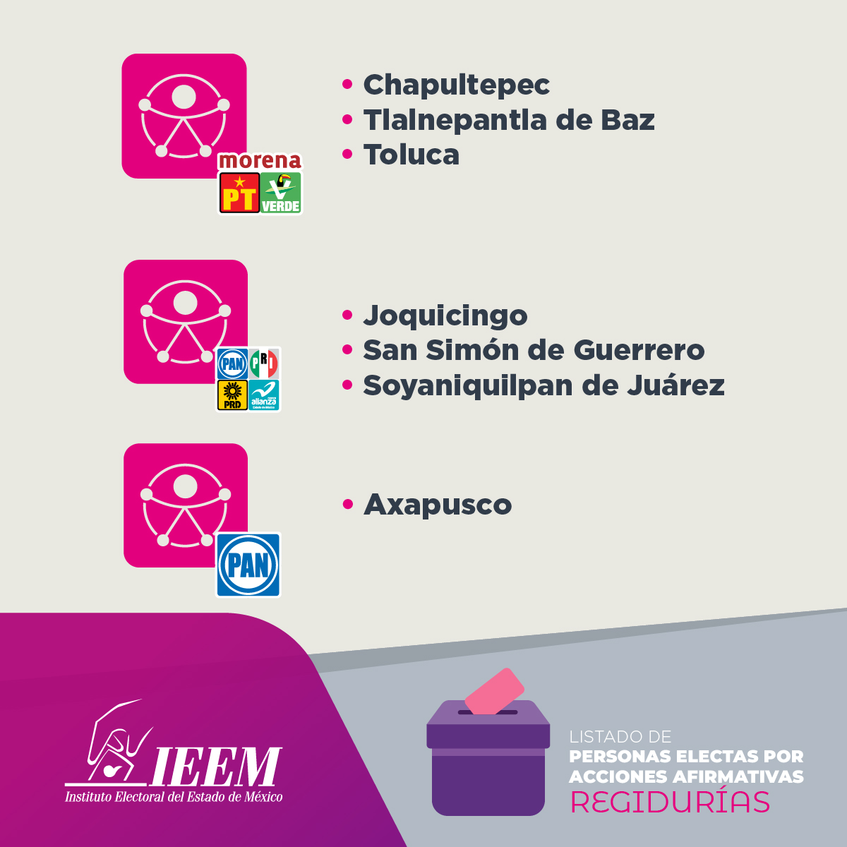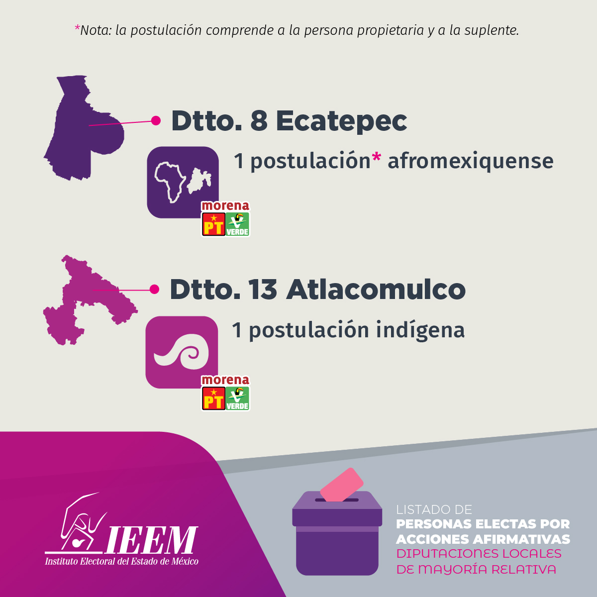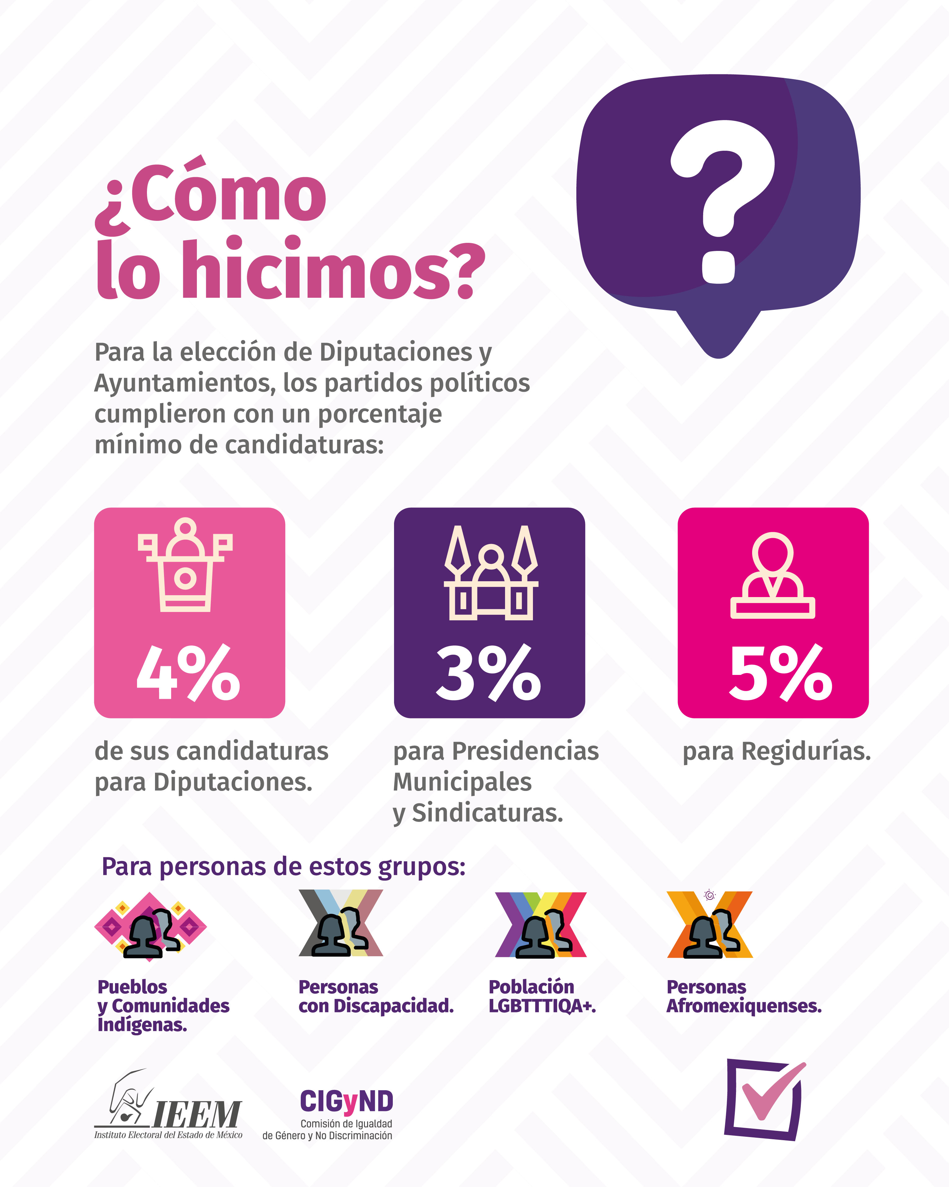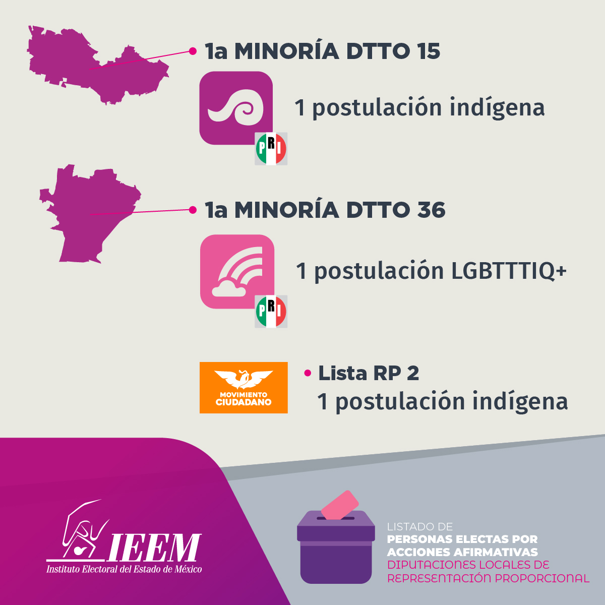Gracias a estas medidas, mejora la representación política, ya que se incluye a personas pertenecientes a pueblos originarios, afrodescendientes, personas con discapacidad y de la población LGBTTTIQA+.