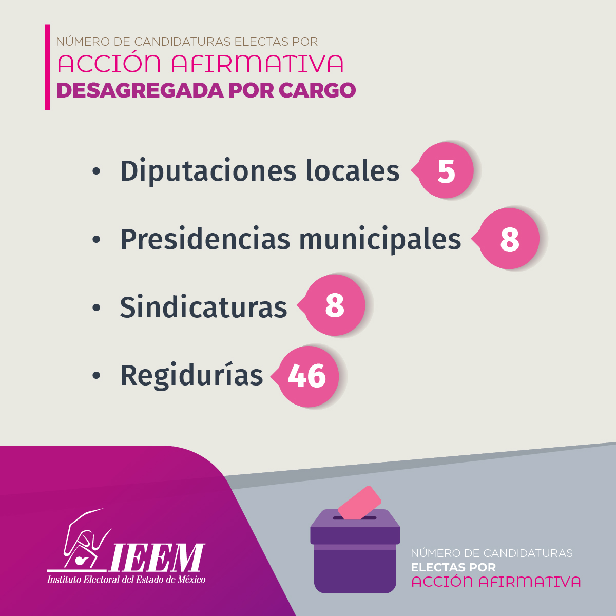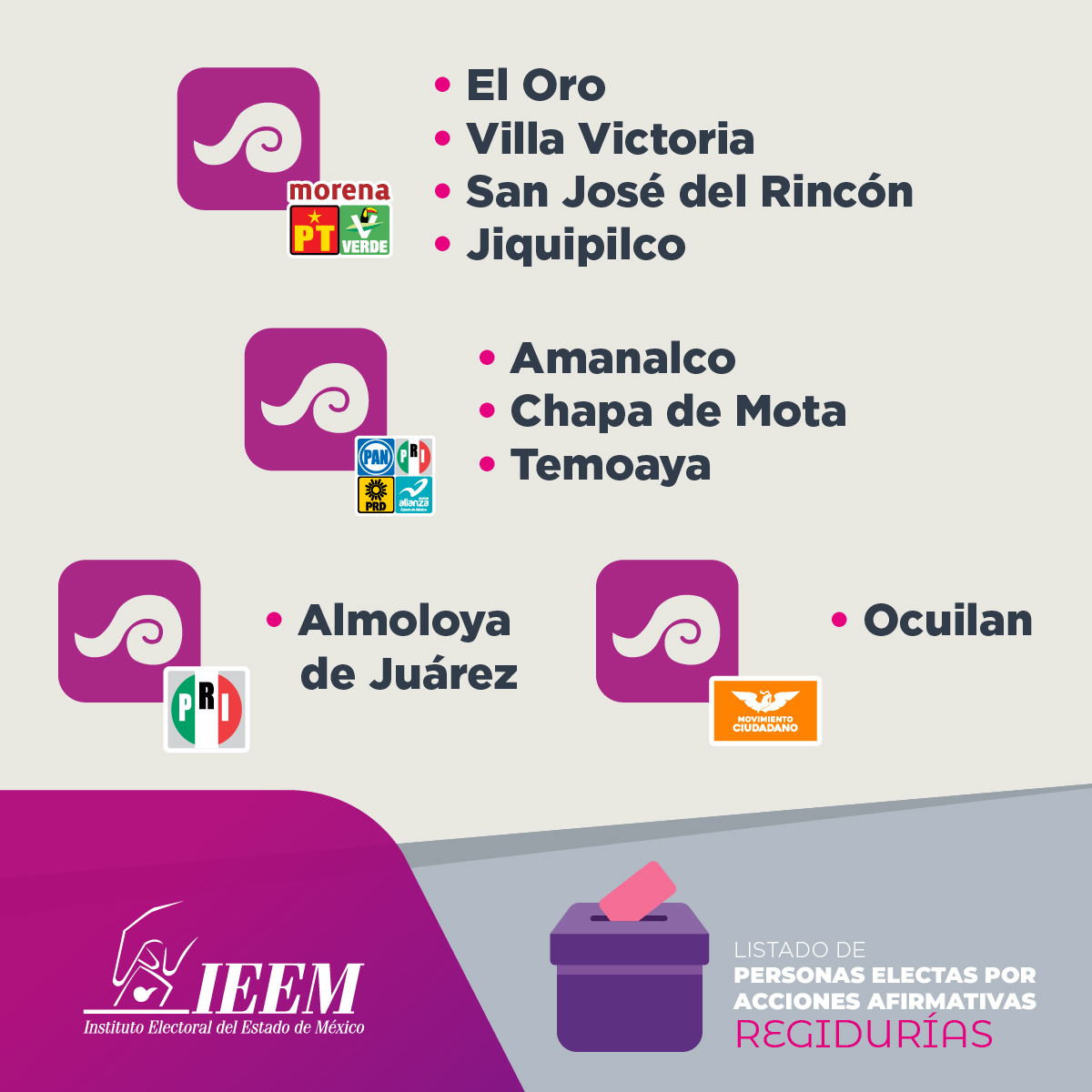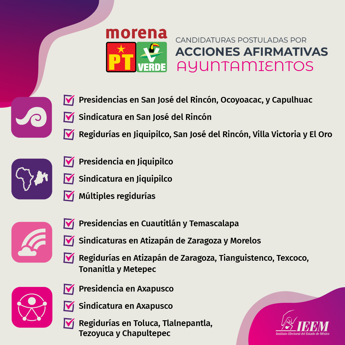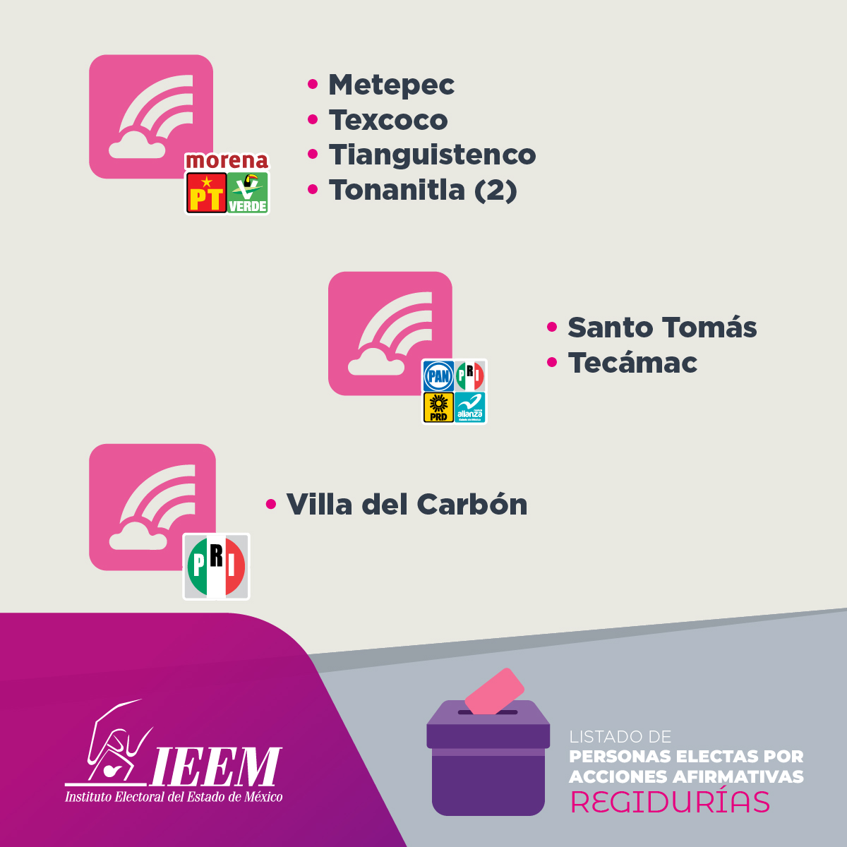 Gracias a estas medidas, mejora la representación política, ya que se incluye a personas pertenecientes a pueblos originarios, afrodescendientes, personas con discapacidad y de la población LGBTTTIQA+.