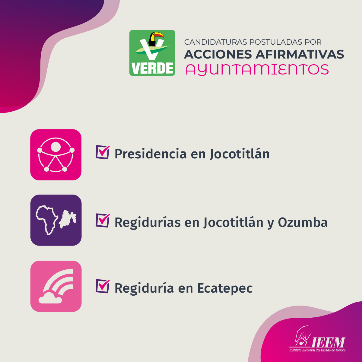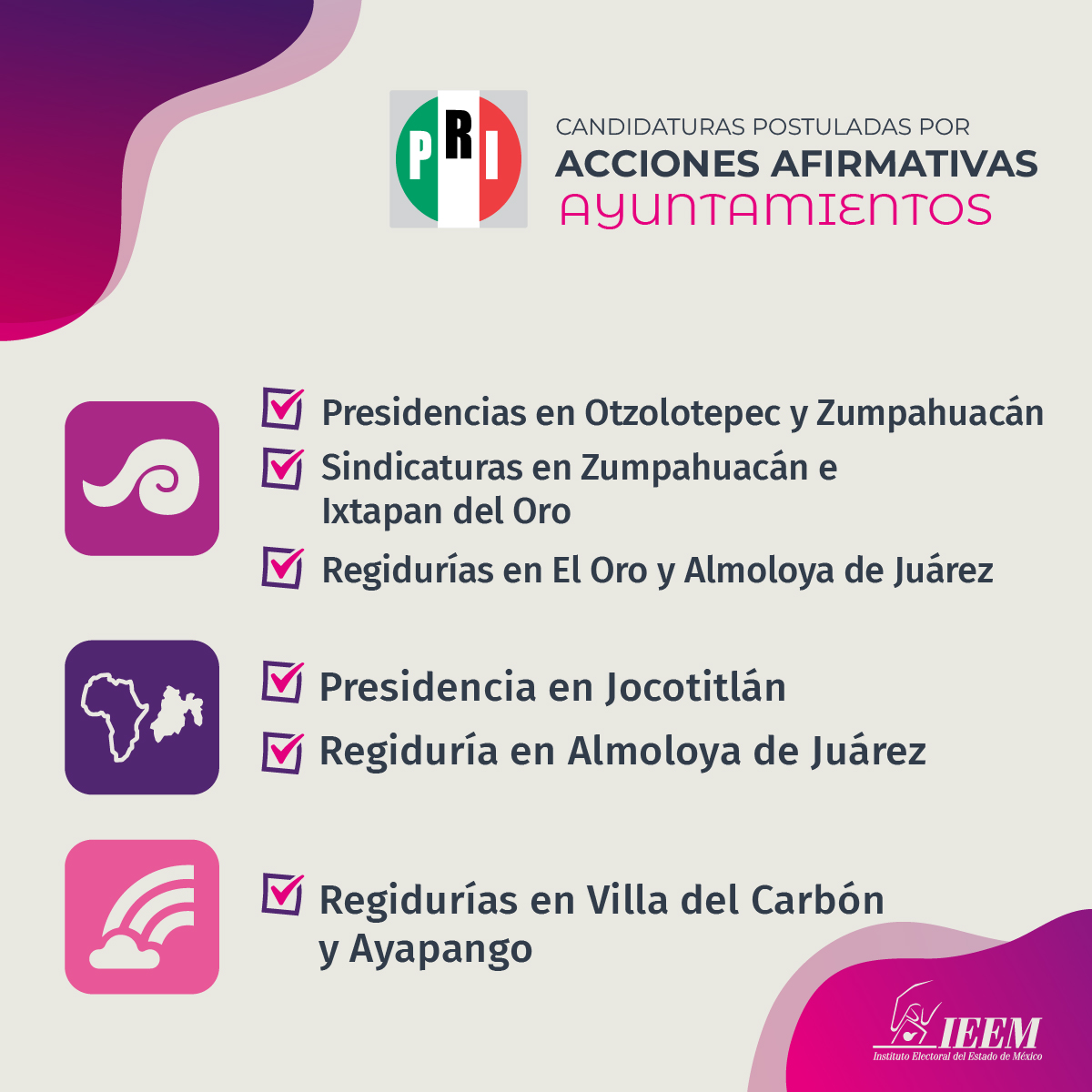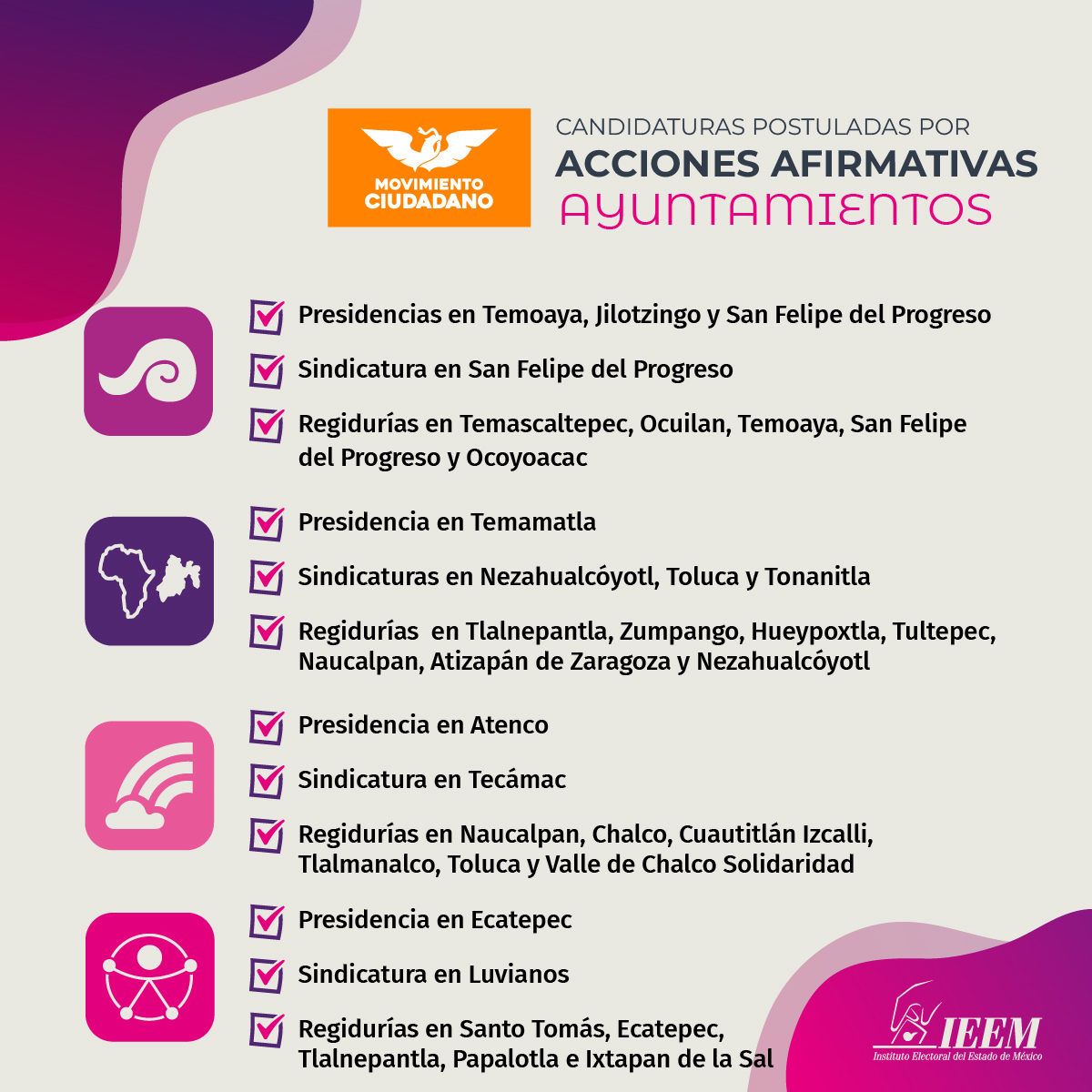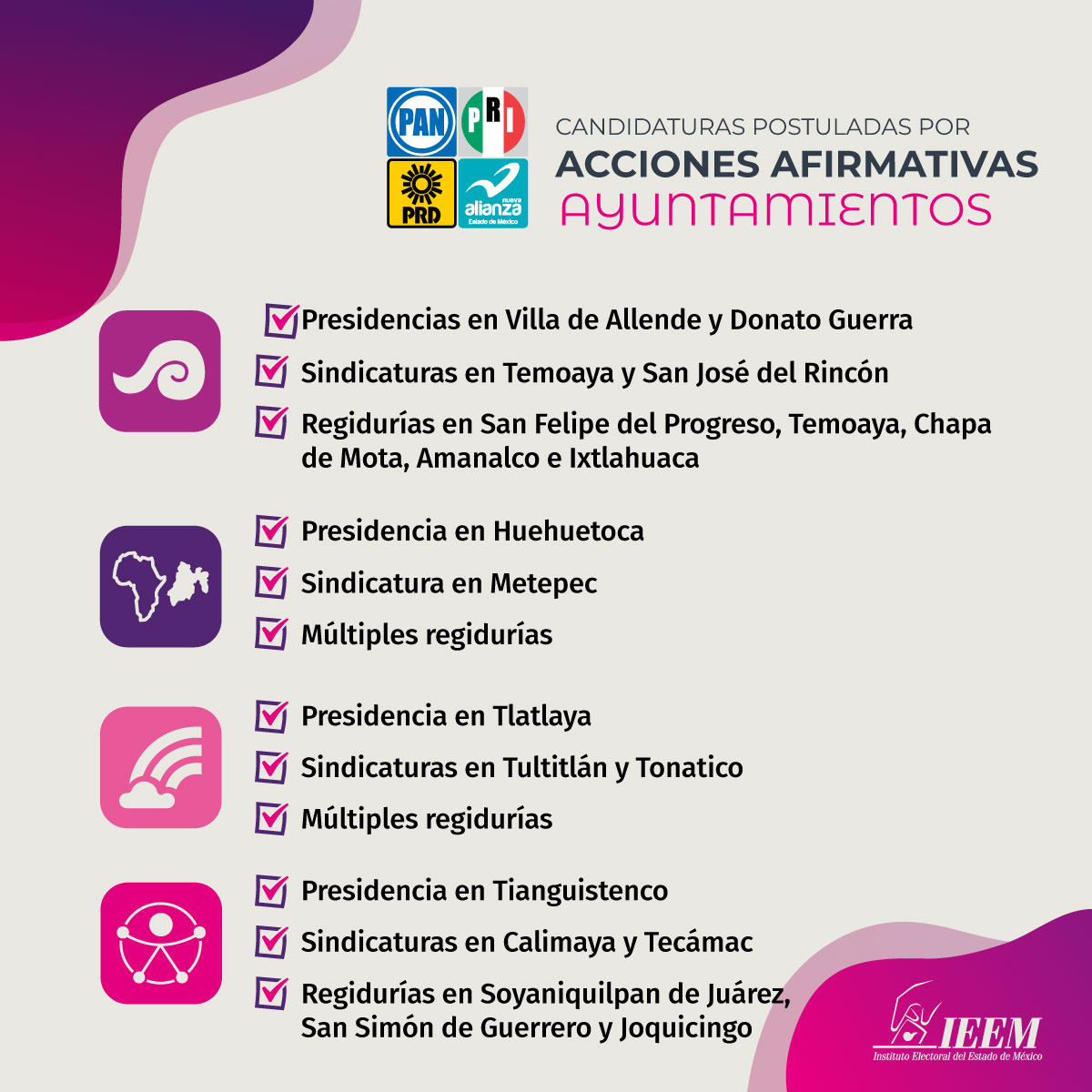 Gracias a estas medidas, mejora la representación política, ya que se incluye a personas pertenecientes a pueblos originarios, afrodescendientes, personas con discapacidad y de la población LGBTTTIQA+.